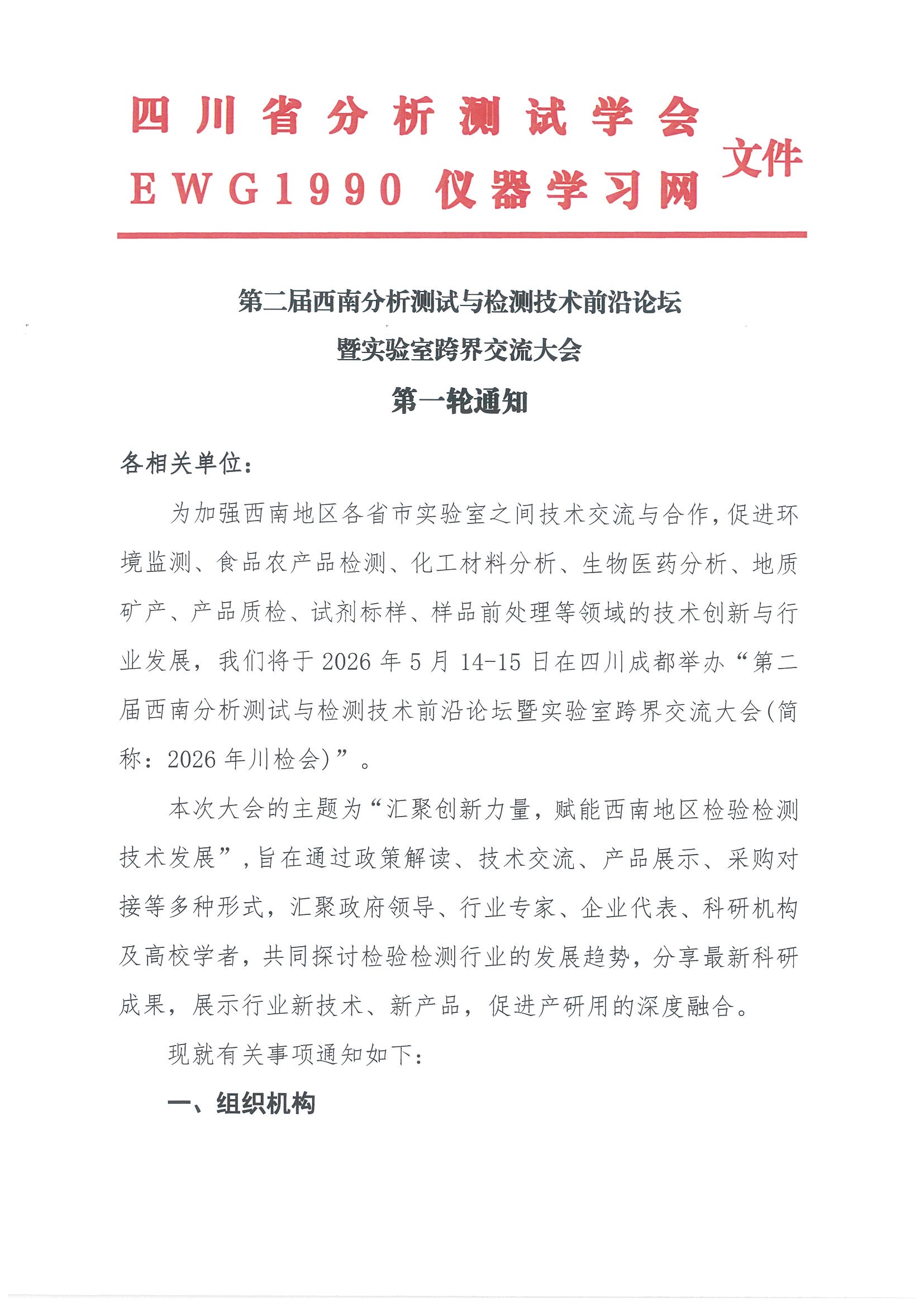 四川省分析测试学会成立于1987年4月,系中国分析测试协会(CAIA)的分支机构之一,是四川省科技厅领导下的社会团体,在四川省民政厅注册登记,挂靠于四川省分析测试服务中心。 四川省分析测试学会由全省分析测试服务机构及相关单位、个人和组织自愿组成。是西南地区从事理化分析检测技术教育、研究和应用的大型专业性社会学术团体。...