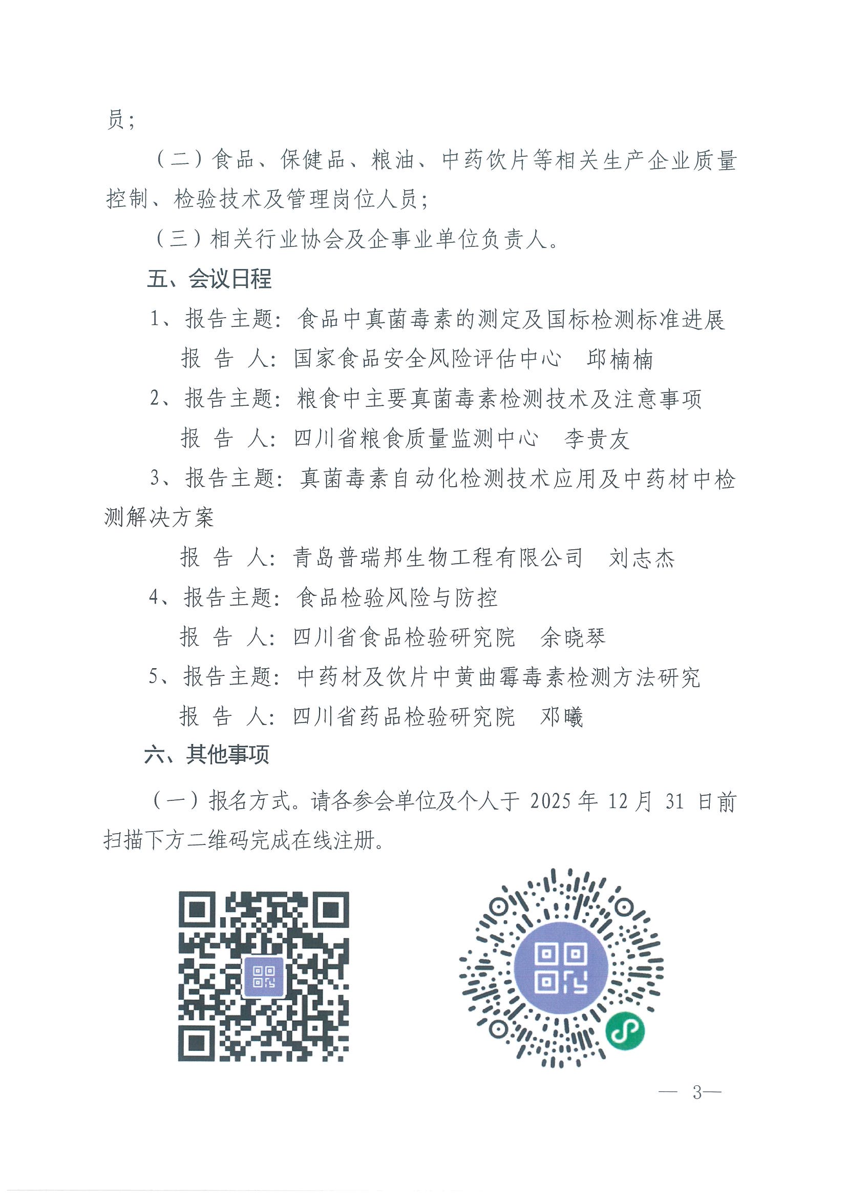 四川省分析测试学会关于召开“理化检测技术暨《食品中多种真菌毒素测定》新国标进展会议”的通知